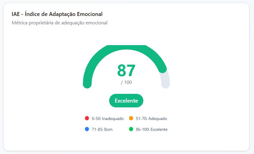 Ele identifica a emoção do usuário, avalia se o tom da resposta foi adequado e calcula um score (IAE™), permitindo correções imediatas e melhora de satisfação.